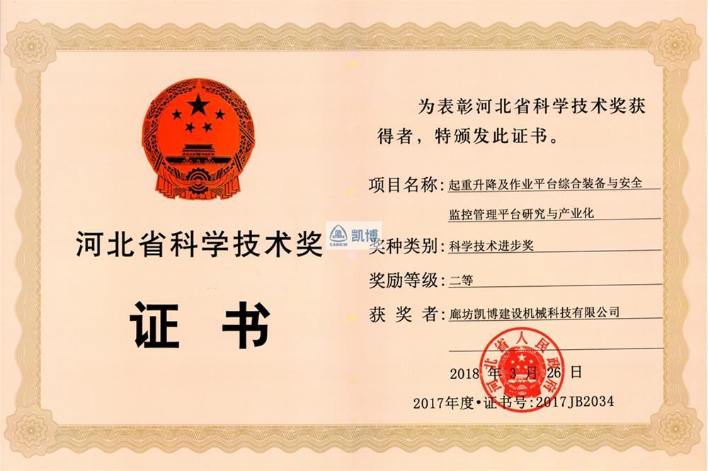 河北省科學技術獎二等獎 起重升降及作業(yè)平臺綜合裝備與安全監(jiān)控管理平臺研究與產(chǎn)業(yè)化