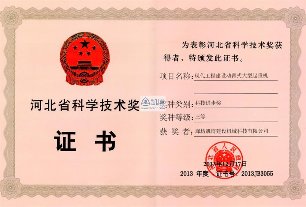 河北省科學技術獎三等獎 現(xiàn)代工程建設動臂式大型起重機