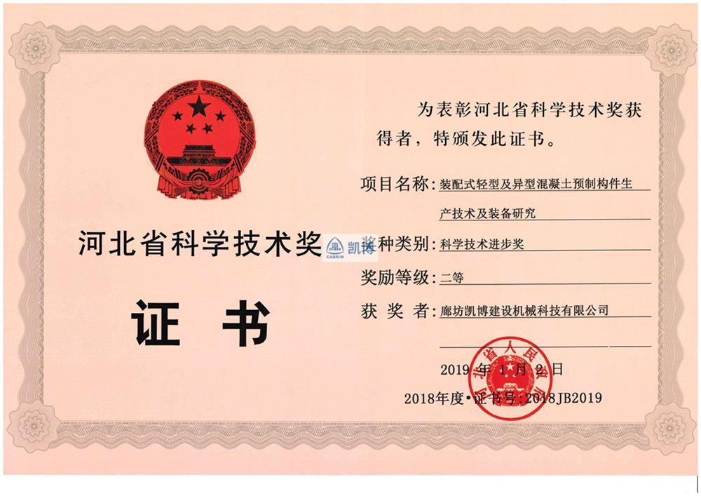 河北省科學技術獎二等獎 裝配式輕型及異型混凝土預制構件生產(chǎn)技術及裝備研究
