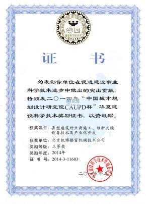 河北省科學技術獎三等獎 既有建筑改造施工機械和電梯改造技術