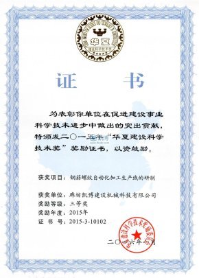 華夏建設科學技術獎 鋼筋螺紋自動化加工生產(chǎn)線的研制
