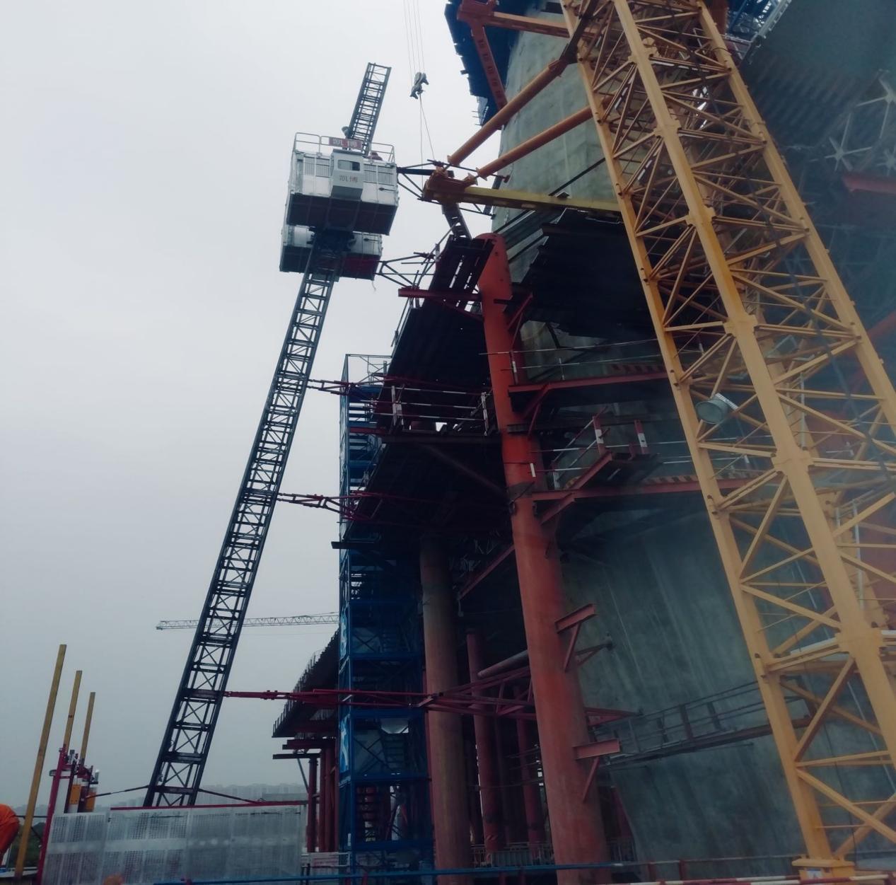 近日,廊坊凱博建設(shè)機(jī)械科技有限公司生產(chǎn)的斜、直線兩用施工升降機(jī)順利投入到廣東佛山“三水三橋”項(xiàng)目。此類型升降機(jī)承重架和吊籠經(jīng)過特殊設(shè)計(jì),角度變化范圍為0~15°,在不增加任何部件的情況下,通過簡單操作即可實(shí)現(xiàn)斜、直線轉(zhuǎn)換。斜線運(yùn)行時,吊籠始終保持水平,角度為0時,該機(jī)可做為普通直線升降機(jī)使用,吊籠尺寸和提升速度可根據(jù)用戶要求定制。該設(shè)備廣泛應(yīng)用于煙囪、橋梁等建筑工程。